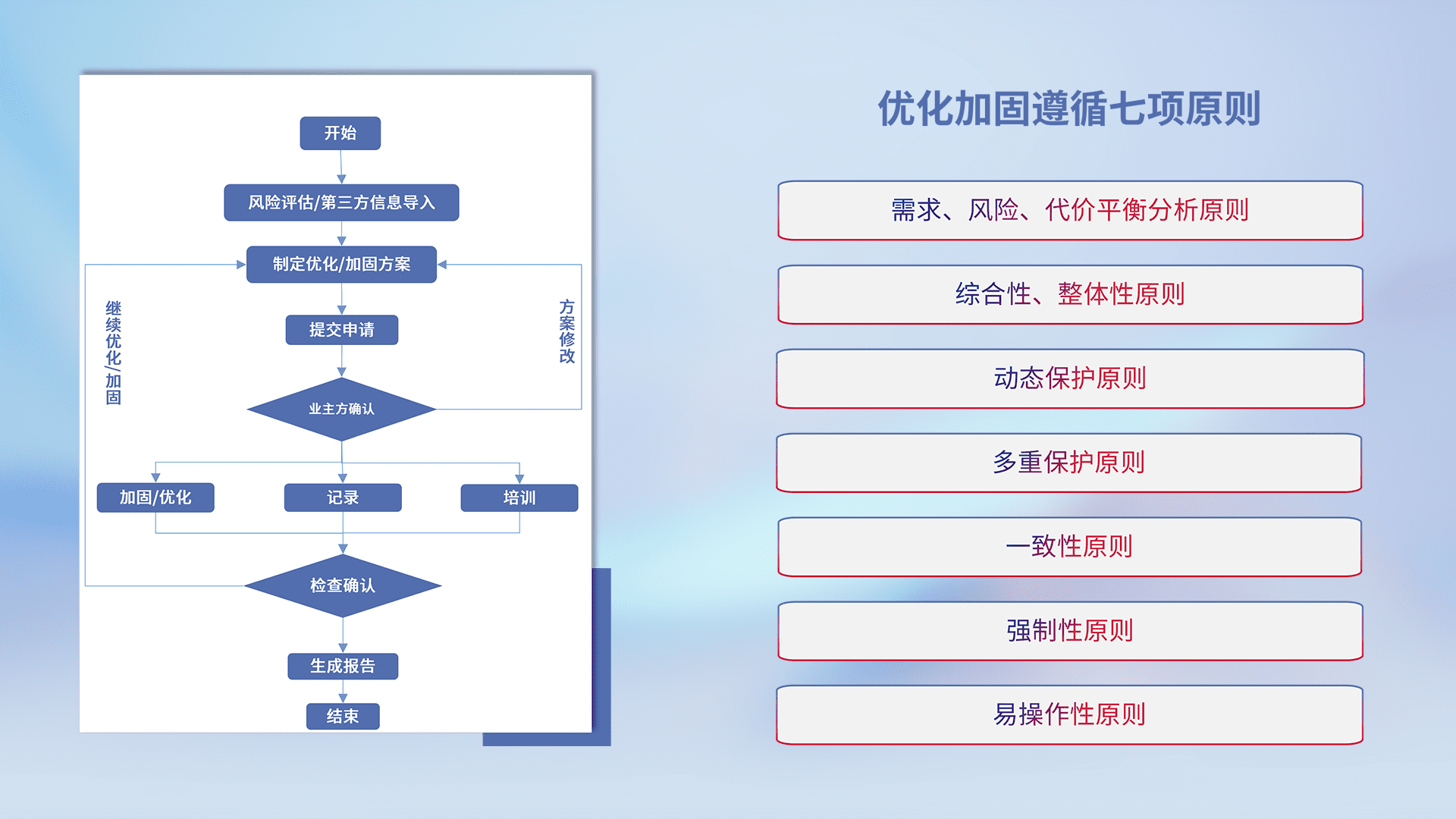 最大程度利用现有资产,,,,对评估发现的问题进行封堵与整改,,,,防止漏洞被利用,,,,提升整体网络安全性,,,为客户带来高标准的优化加固服务。。。。